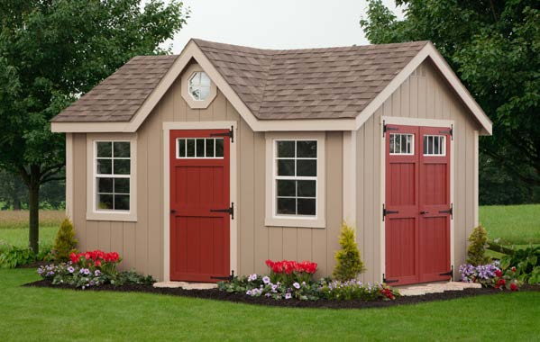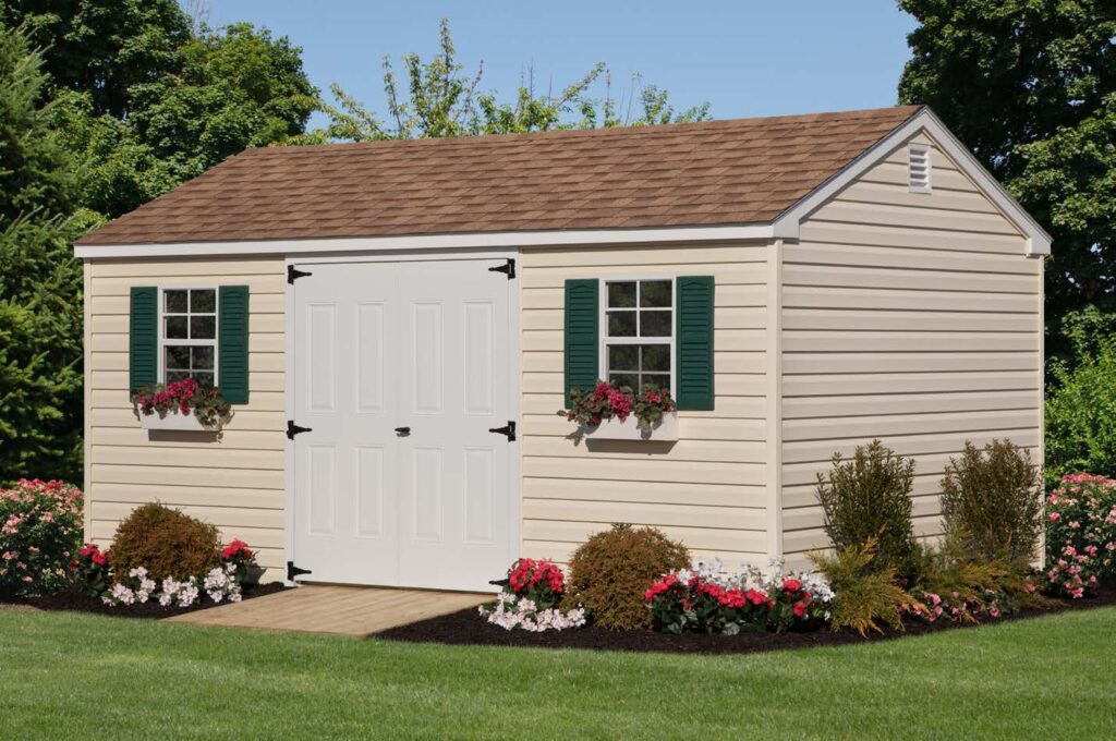 With its simple, classic style, our New England shed fits perfectly into nearly any backyard setting. Choose from a variety of sizes and models designed to suit your needs. A long list of standard features includes architectural shingles and boxed window trim. Add transom windows for even more style and appeal.