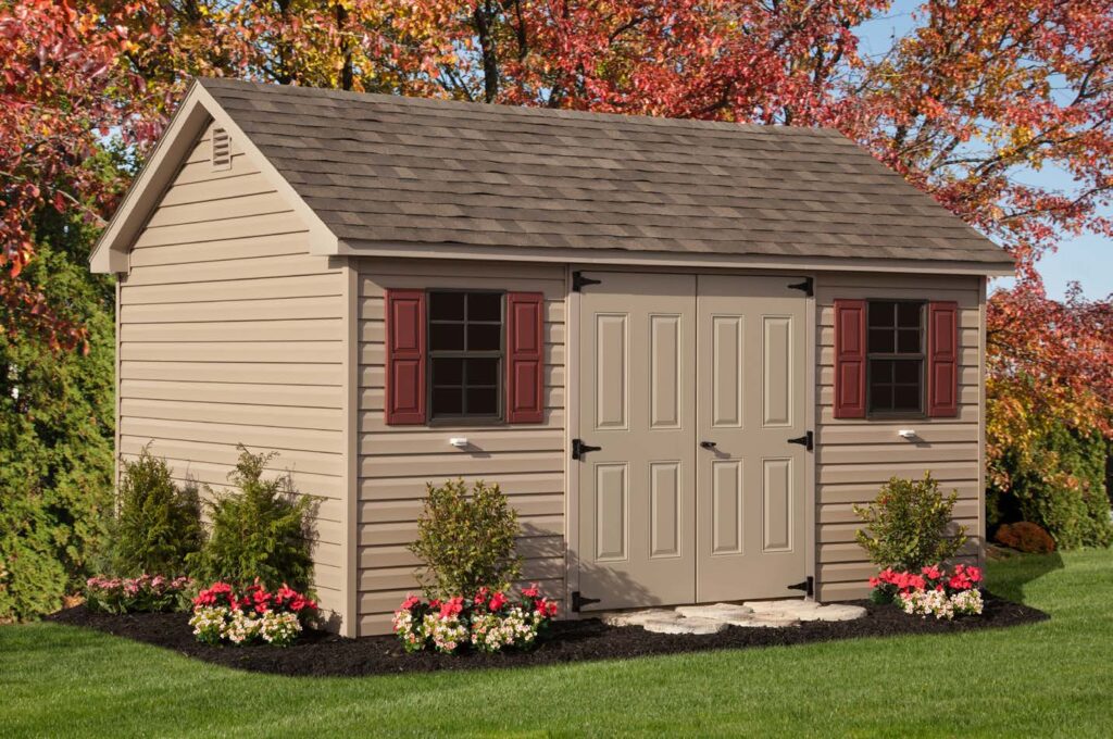 With its simple, classic style, our New England shed fits perfectly into nearly any backyard setting. Choose from a variety of sizes and models designed to suit your needs. A long list of standard features includes architectural shingles and boxed window trim. Add transom windows for even more style and appeal.