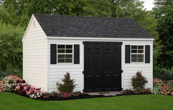With its simple, classic style, our New England shed fits perfectly into nearly any backyard setting. Choose from a variety of sizes and models designed to suit your needs. A long list of standard features includes architectural shingles and boxed window trim. Add transom windows for even more style and appeal.